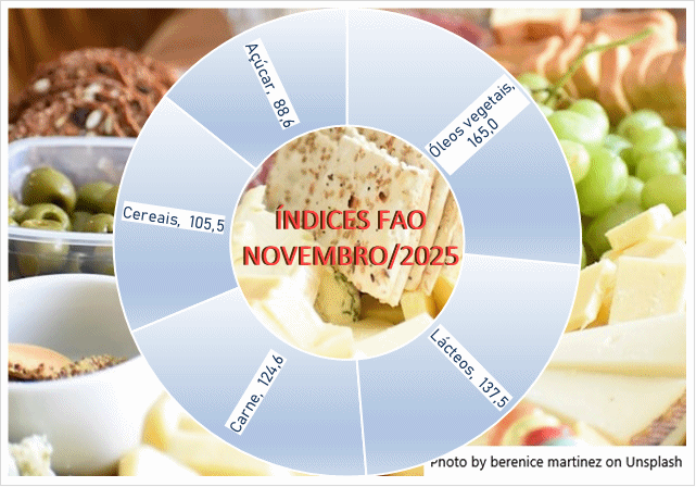 DESTAQUE05 Dez 2025 Apresentação: Terra Viva Foto de capa: Brian Suman on Unsplash O Índice FAO dos produtos lácteos chegou à média de 137,5 pontos, em novembro, 4,4 pontos (-3,1%) em relação a outubro e 2,4 pontos (-1,7%) na comparação interanual. |