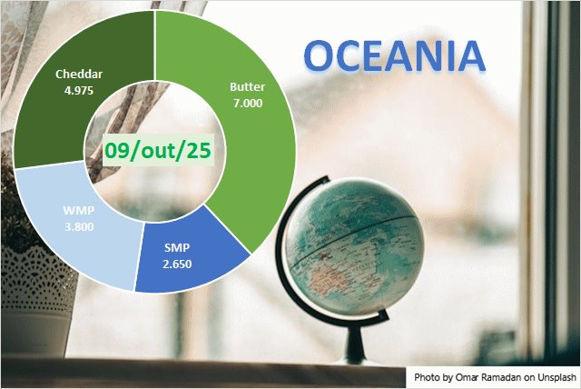 ![]() 13 Out 2025 presentação: Terra Viva Foto de capa: www.terraviva.com.br No conjunto, as cotações das commodities lácteas caíram pela 8ª quinzena consecutiva na Oceania, de acordo com os dados do mais recente relatório do USDA. |
