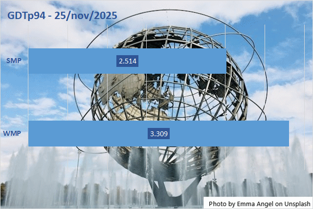 O leite em pó integral (WMP) perdeu mais 4,4% de seu valor nesse final de novembro, na comparação com o evento de 15 dias atrás, acumulando perdas de quase 18% desde o final de julho.