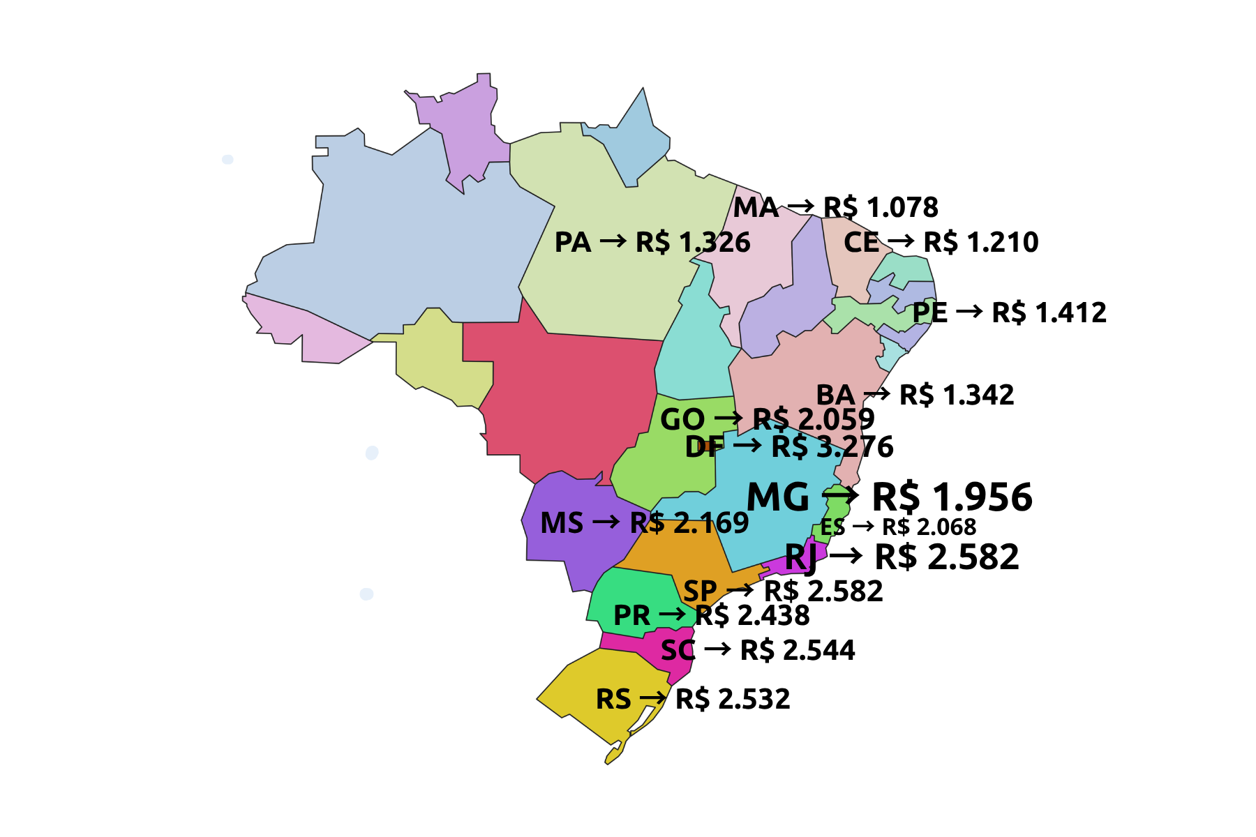 Nota informativa: o IBGE publicou os valores da renda média por estado, porém, não publicou ainda a massa de renda por classe de renda de A a E. Veja no mapa Brasil, abaixo, as novas rendas médias por estado em 2025.